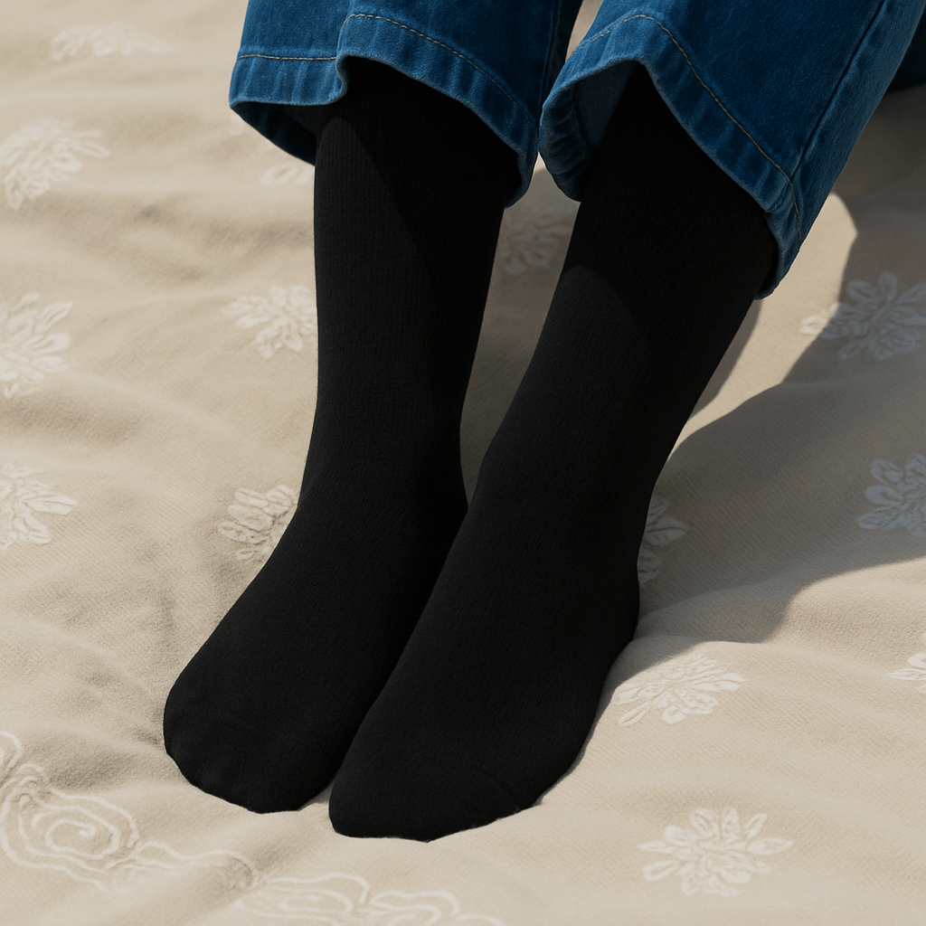 Материята е еластична и гладка, което позволява чорапите да се обуват и събуват лесно, без усилие и без стягане.